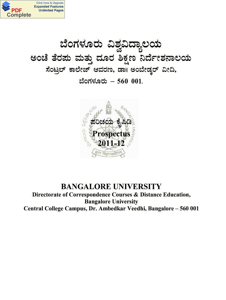 Click Here & Upgrade PDF Complete Expanded Features Unlimited Pages Documents Aug CAI CAN VG v ZG Pt CAI Al PE DGT, q AQG, Aug 560 001. JAI Pr Prospectus 201112 BANGALORE UNIVERSITY Directorate of