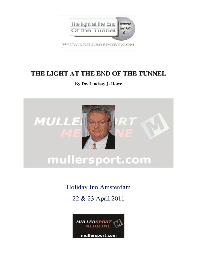 THE LIGHT AT THE END OF THE TUNNEL By Dr. Lindsay J. Rowe Holiday Inn Amsterdam 22 & 23 April 2011 THE LIGHT AT THE END OF THE TUNNEL LINDSAY J. ROWE M. App. Sc (Chiropractic×, M.D., D.A.C.B.R.,