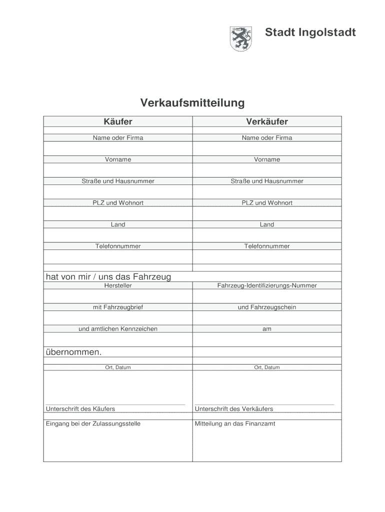 Holen Sie sich kostenlos Verkaufsmitteilung Verkaufsmitteilung - www2 ingolstadt