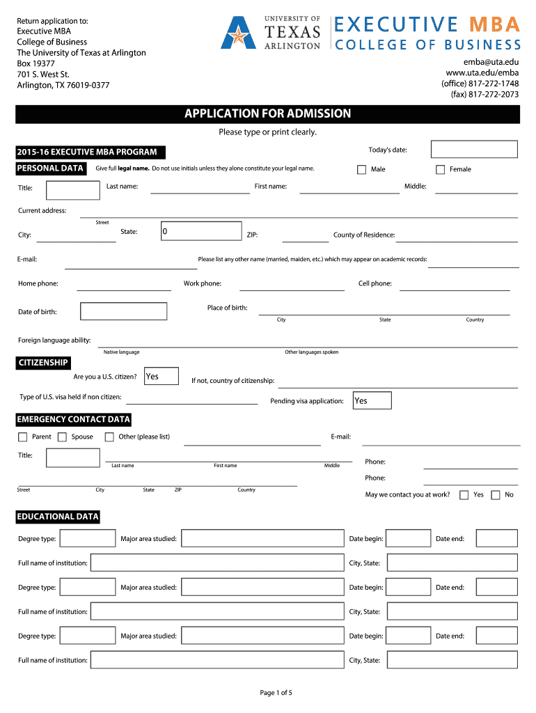 Get the free APPLICATION FOR ADMISSION - Executive MBA - The University of ... - emba uta