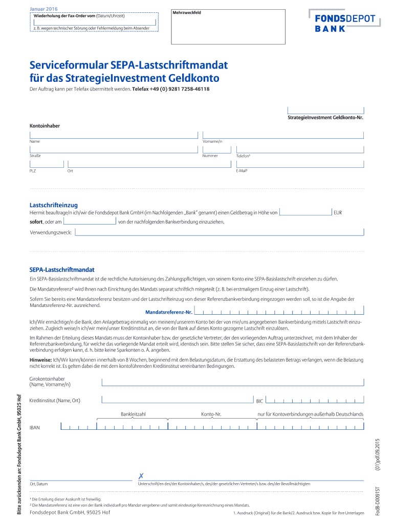 Holen Sie sich kostenlos Serviceformular SEPA-Lastschriftmandat fr das - ssl01 depotstand