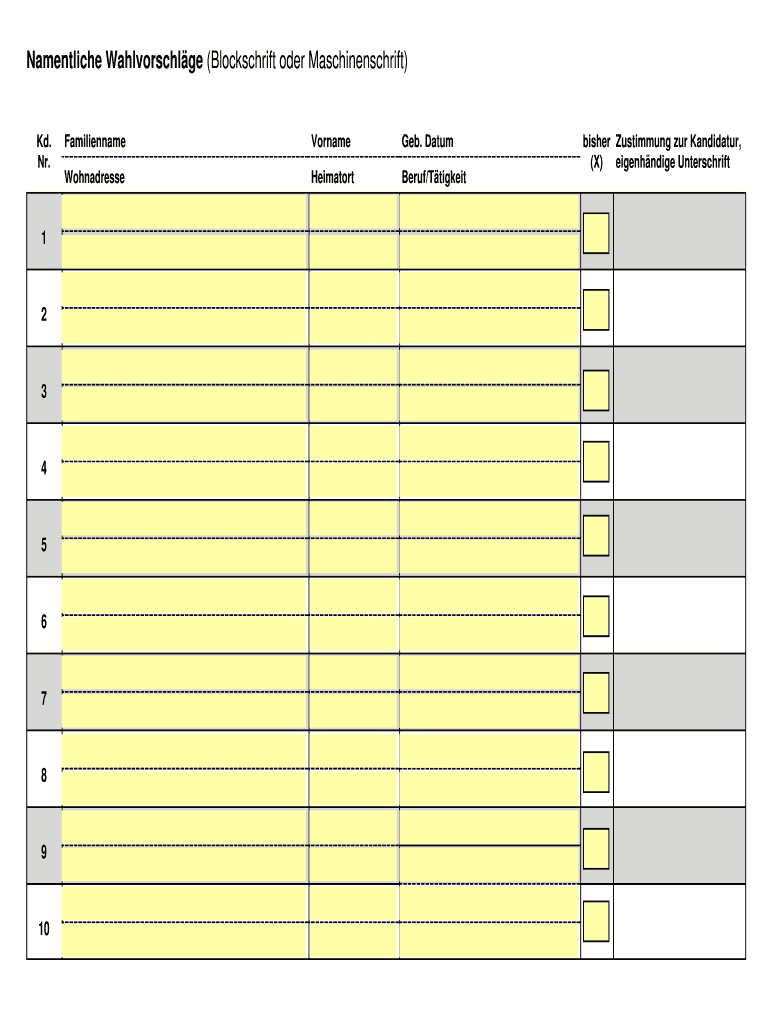 So füllen Sie namentliche wahlvorschlge blockschrift oder aus