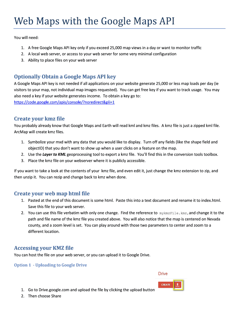 This document provides guidelines on how to create web maps using the Google Maps API, including obtaining an API key, creating kmz files, and incorporating Google Fusion Tables.