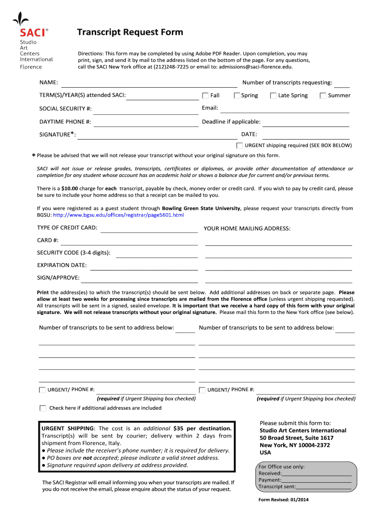 Get the free BTranscript Request Formb - SACI Studio Art Centers International