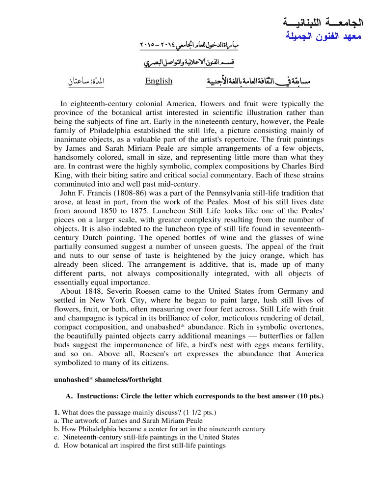 4102 4102 : English In eighteenth century colonial America, flowers and fruit were typically the province of the botanical artist interested in scientific illustration rather than being the subjects