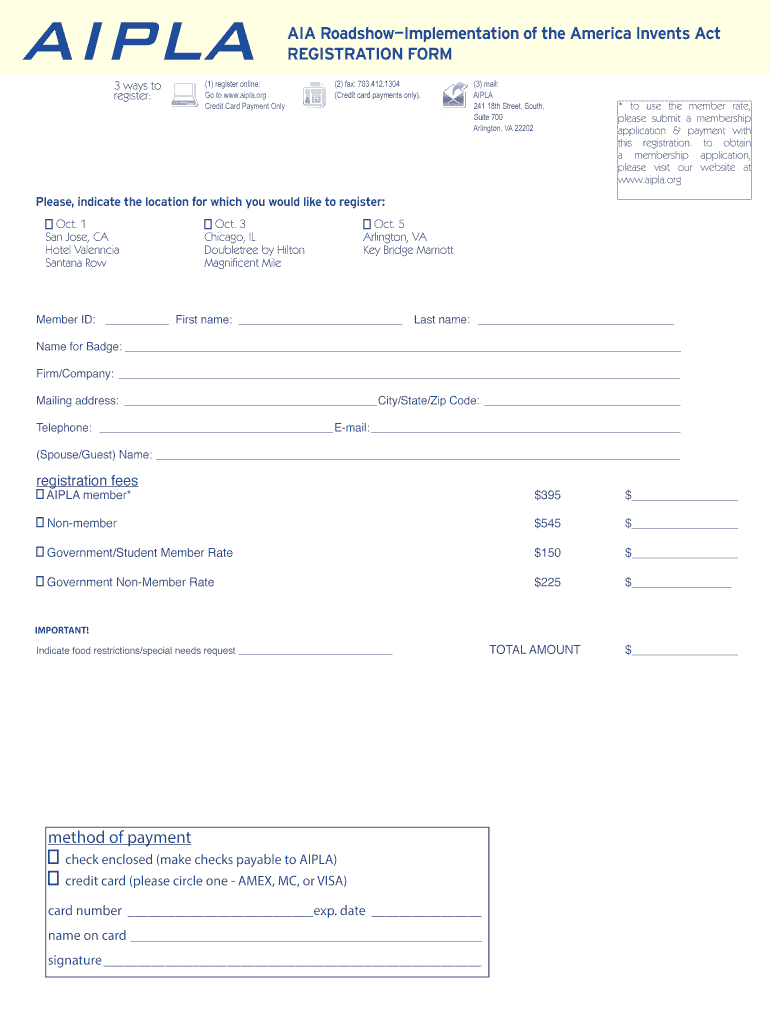 Get the free AIPLA Registration Form - aipla