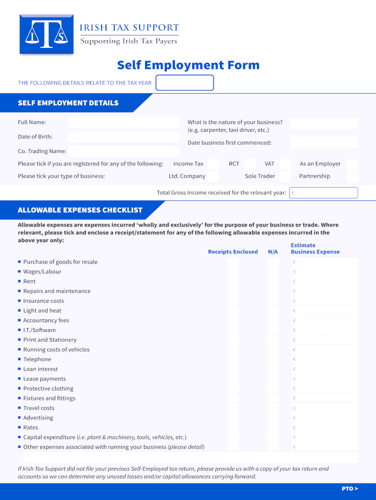 Get the free BSelfb Employment bFormb - Irish bTaxb Support - irishtaxsupport