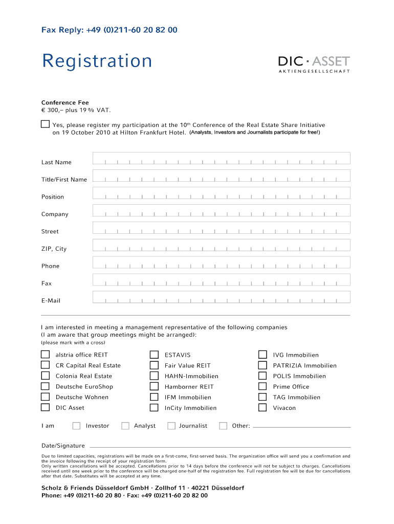 Get the free 10th Annual Conference of the Real Estate Share ... - DIC Asset AG - dic-asset