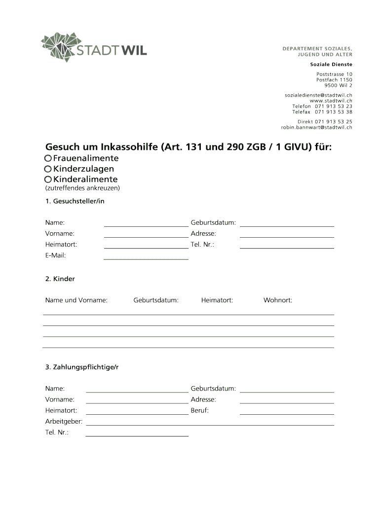 Holen Sie sich kostenlos Gesuch um Inkassohilfe (Art. 131 und 290 ZGB / 1 GIVU) - Stadt Wil - sta...