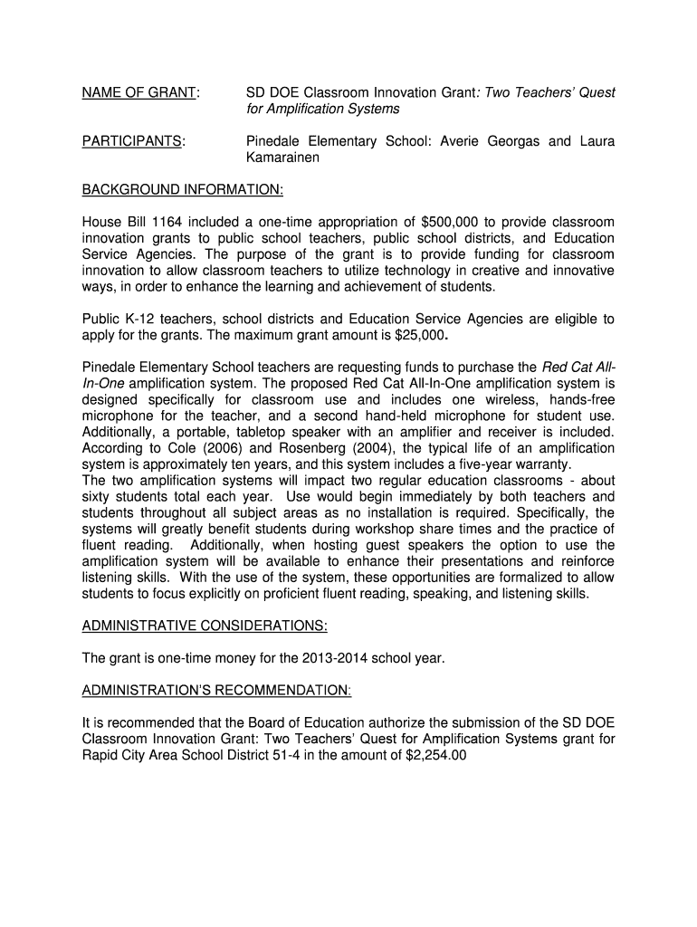 Get the free SD DOE Classroom Innovation Grant: Two Teachers’ Quest for Amplification Systems - p...