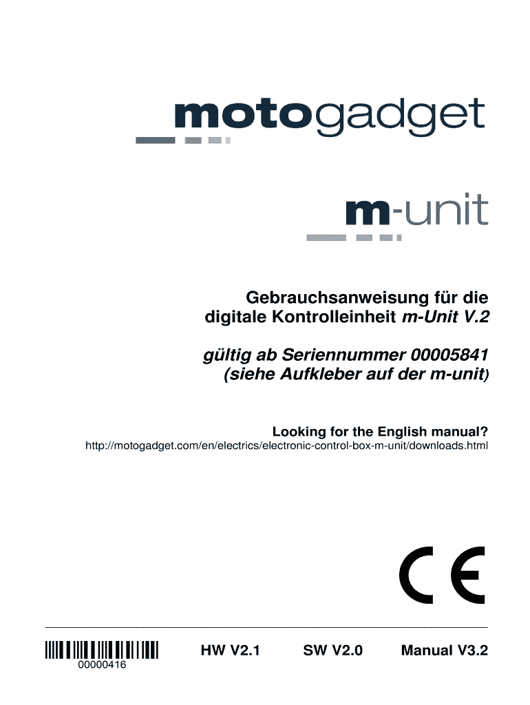 Gebrauchsanweisung for die digital Kontrolleinheit unit V.2 gig ab Seriennummer 00005841 (siege Aufkleber AUF her unit) Looking for the English manual? Http://motogadget.com×en/electrics×electroniccontrolboxmunit×downloads.html