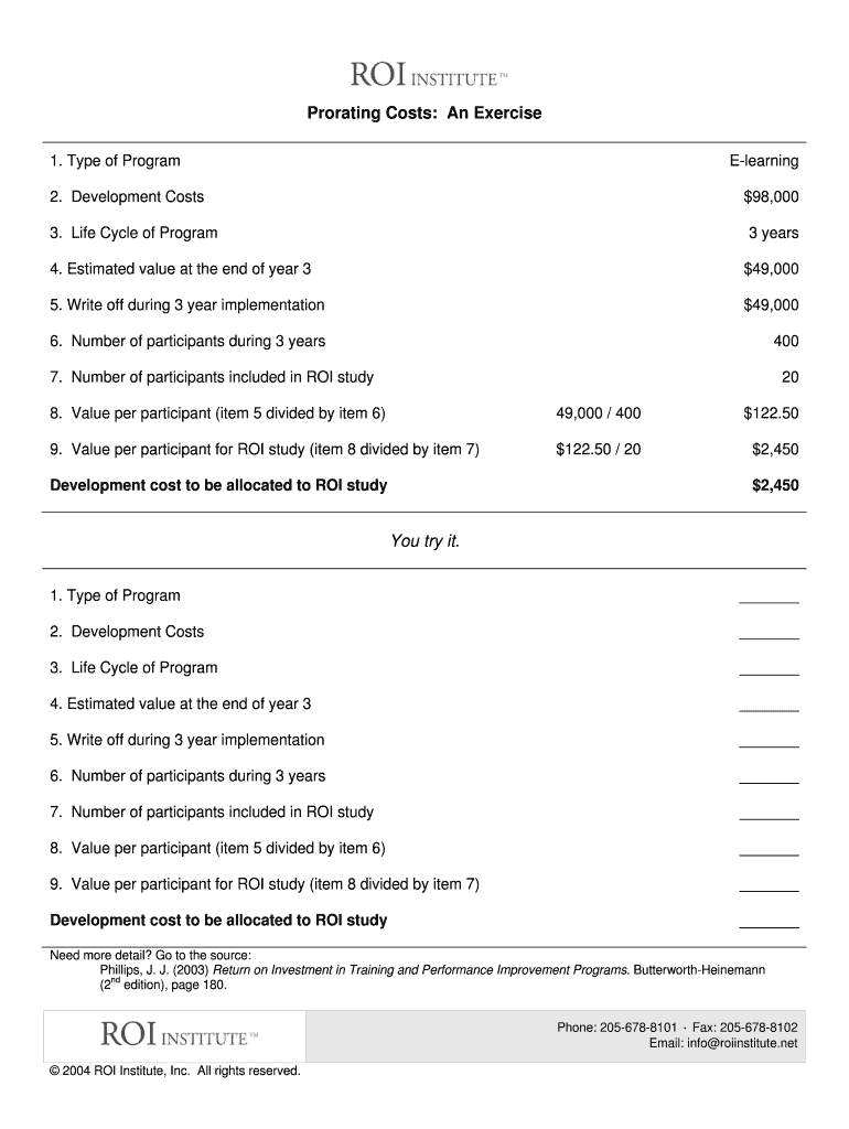 Prorating Costs: An Exercise e-learning 1. Type of Program 2. Development Costs $98,000 3. Life Cycle of Program 3 years 4. Estimated value at the end of year 3 ×49,000 5. Write off during 3 year