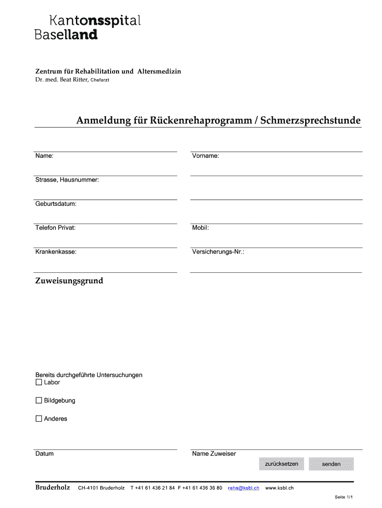 Holen Sie sich kostenlos Anmeldung fr Rckenrehaprogramm Schmerzsprechstunde - ksbl