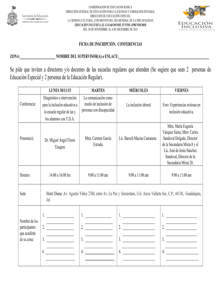Get the free Fichas de inscripcin CONFERENCIAS - estudiaenjaliscogobmx