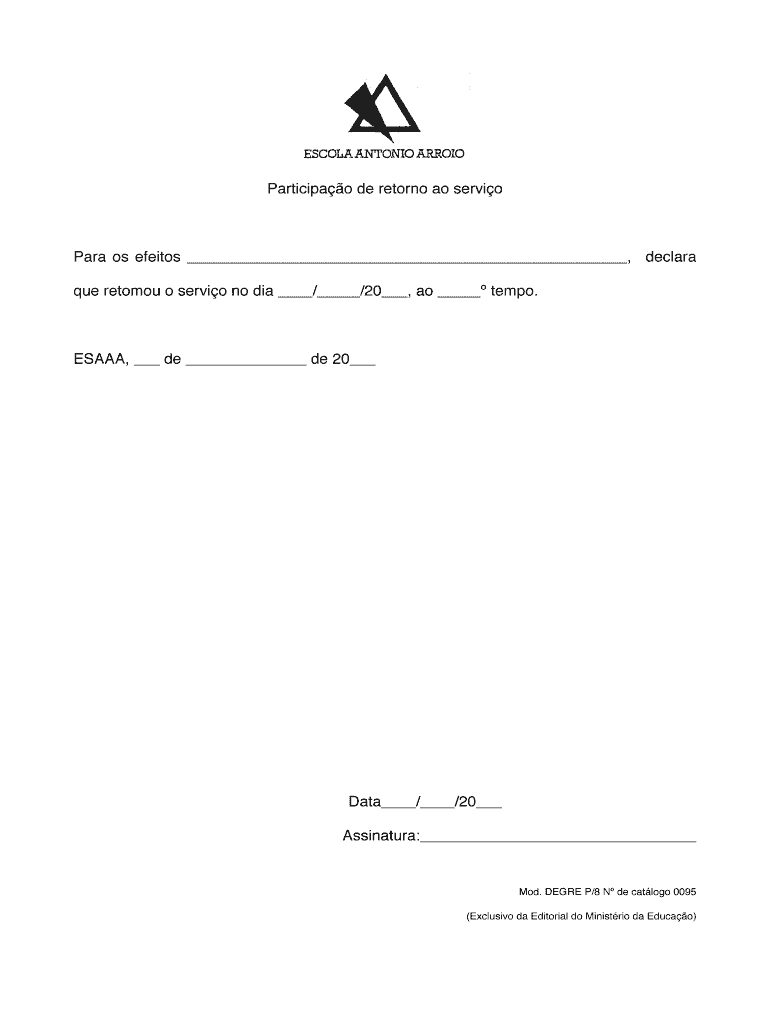 Obtenha o gratuito ! Participa o de retorno ao servi o Para os efeitos , declara que ... - antoni...