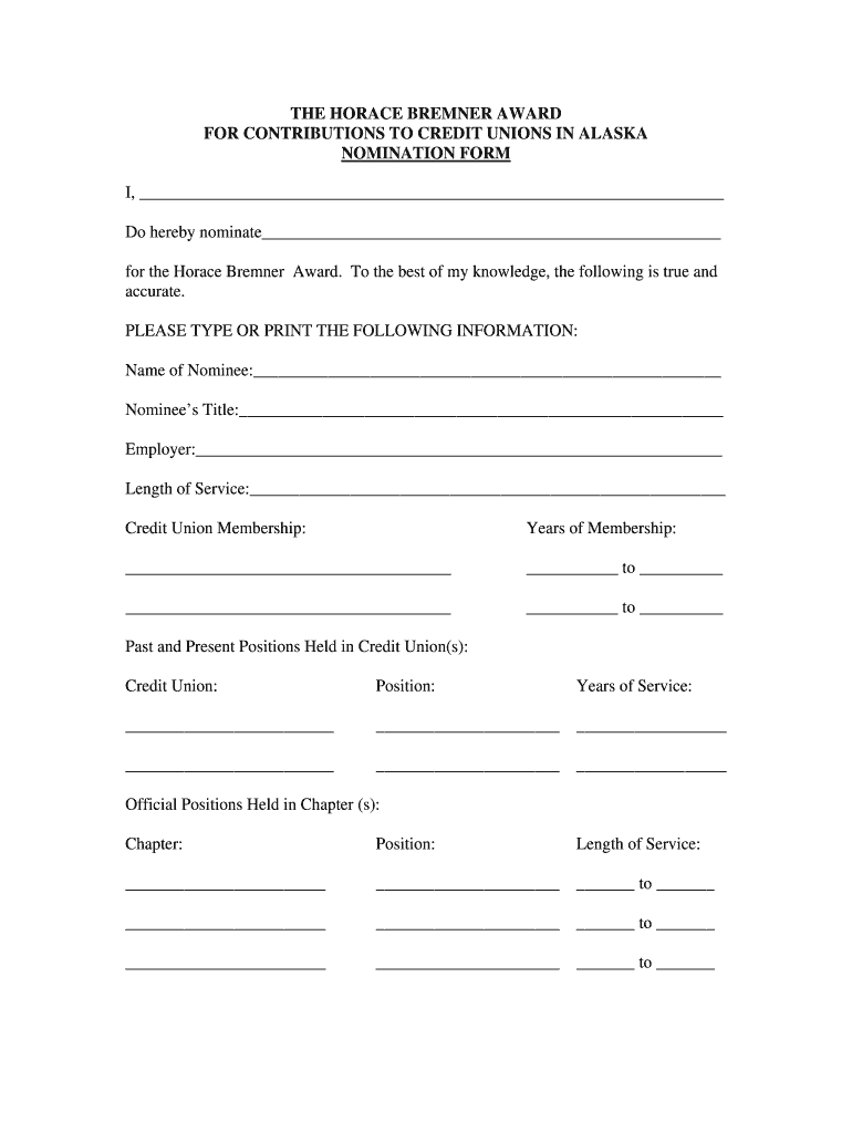 Get the free THE HORACE BREMNER AWARD FOR CONTRIBUTIONS TO CREDIT - alaskacreditunions