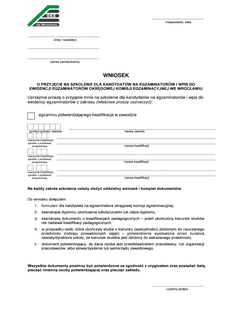 Examiners who are involved in conducting exams in the Central Examination Office are required to file kod egzaminatora w oke.