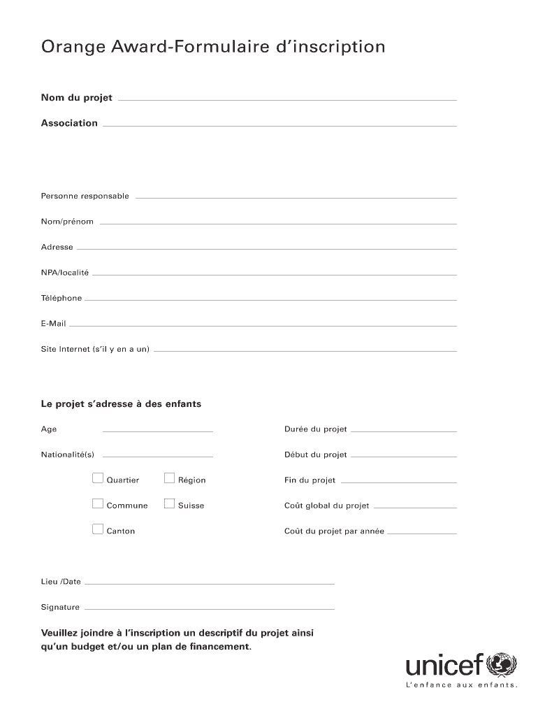 Get the free Orange Award-Formulaire dinscription - assets unicef