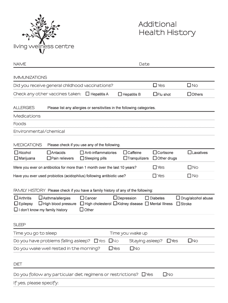 Get the free Additional Health History - Living Wellness - livingwellness