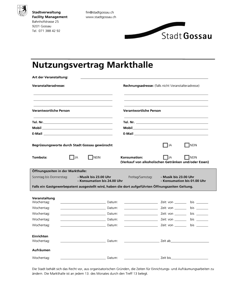 Holen Sie sich kostenlos Nutzungsvertrag Markthalle - Stadt Gossau Online - stadtgossau