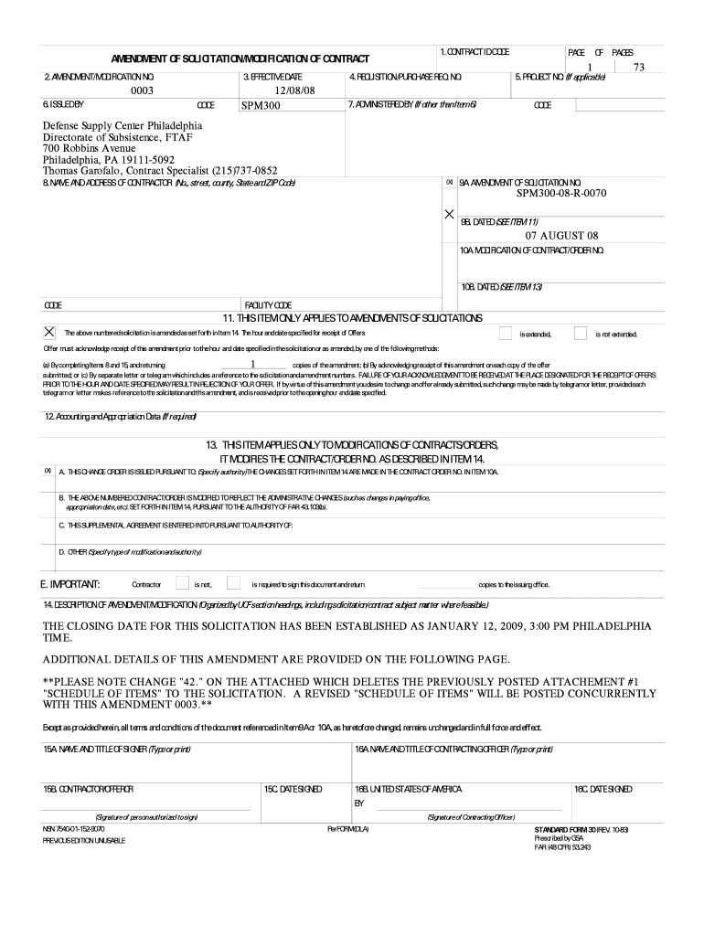 This document serves as an amendment and modification to an existing contract related to procurement needs of the Defense Supply Center Philadelphia. It details the changes to solicitation deadlines,