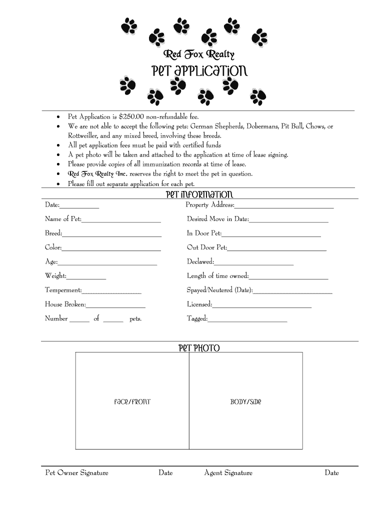 Get the free Pet Application - Red Fox Realty - redfoxrealty
