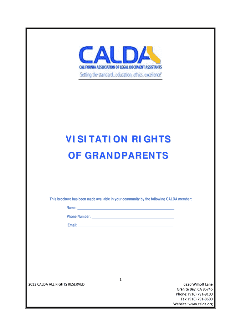 VISITATION RIGHTS OF GRANDPARENTS This brochure has been made available in your community by the following CALLA member: Name: Phone Number: Email: 2013CALDAALLRIGHTSRESERVED 1 6220WilhoffLane Granite,CA95746