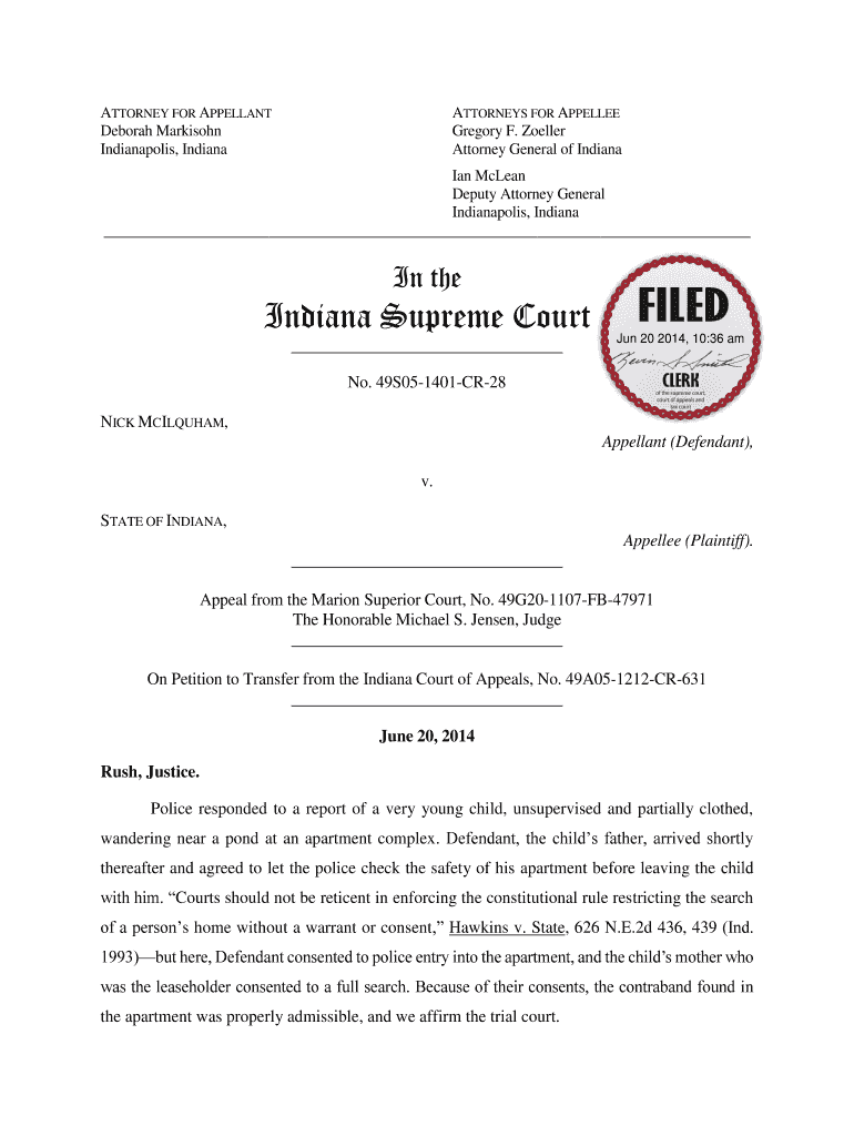 Get the free Nick McIlquham v. State of Indiana - IN.gov - in