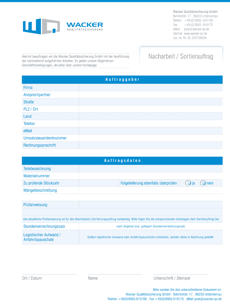 So füllen Sie nacharbeit sortierauftrag - wacker aus