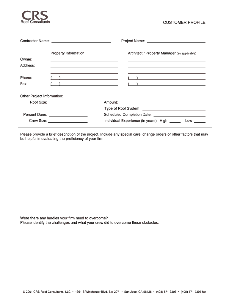 Get the free Vendor Customer Profile - CRS Roof Consultants