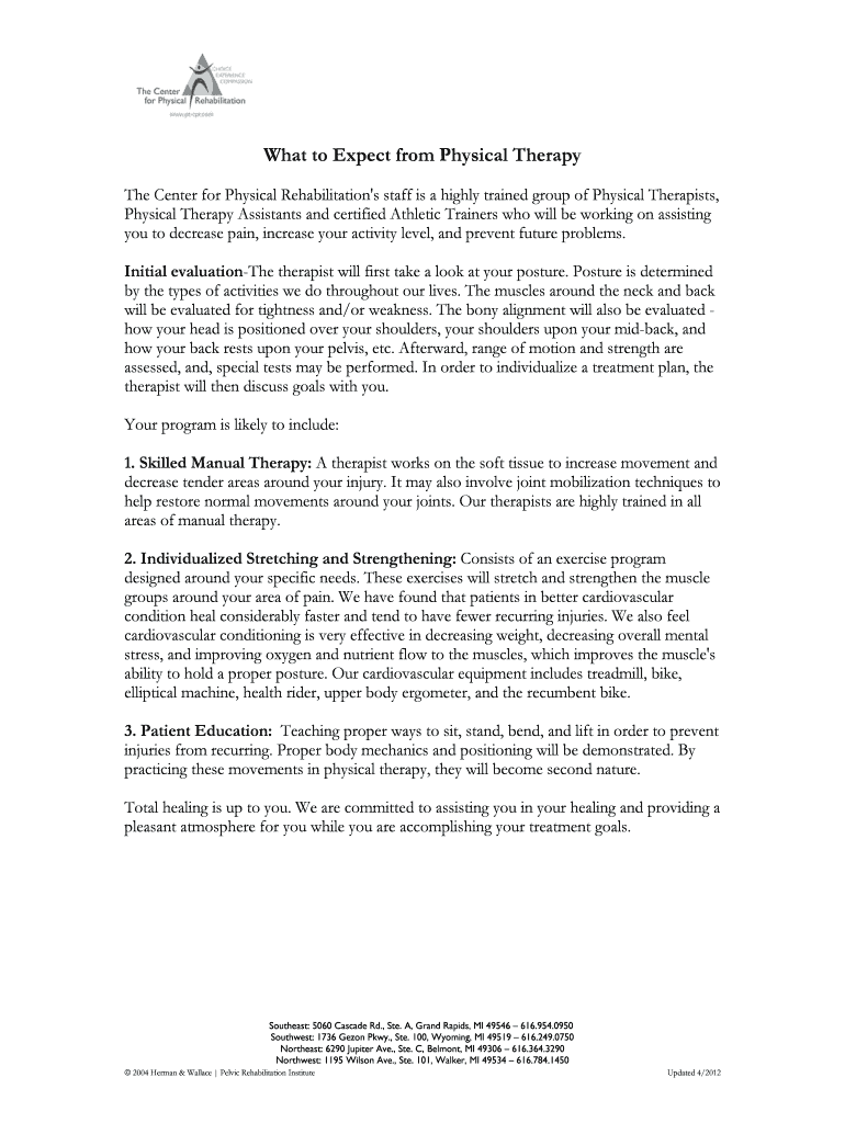Get the free The Center for Physical Rehabilitation 's staff is a highly trained group of Physica...