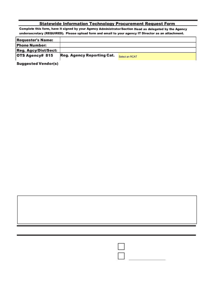 Statewide Information Technology Procurement Request Form Complete this form, have it signed by your Agency Administrator×Section Head as delegated by the Agency undersecretary (REQUIRED×. Please