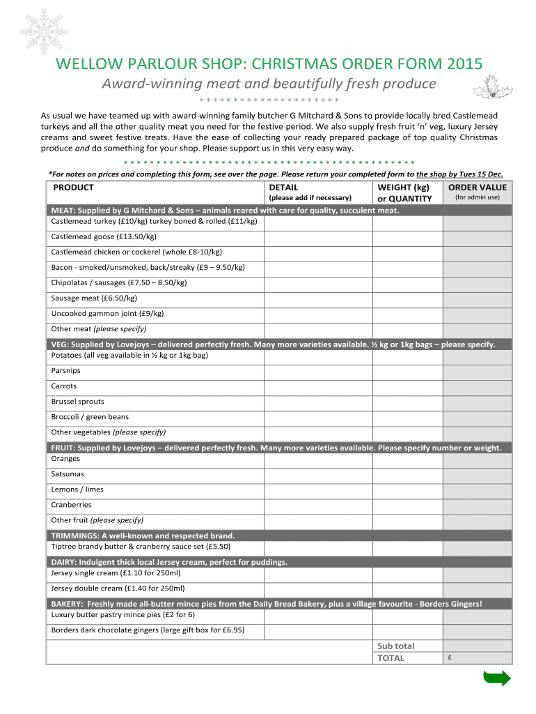 Get the free WELLOW PARLOUR SHOP CHRISTMAS ORDER FORM 2015 - wellowparish