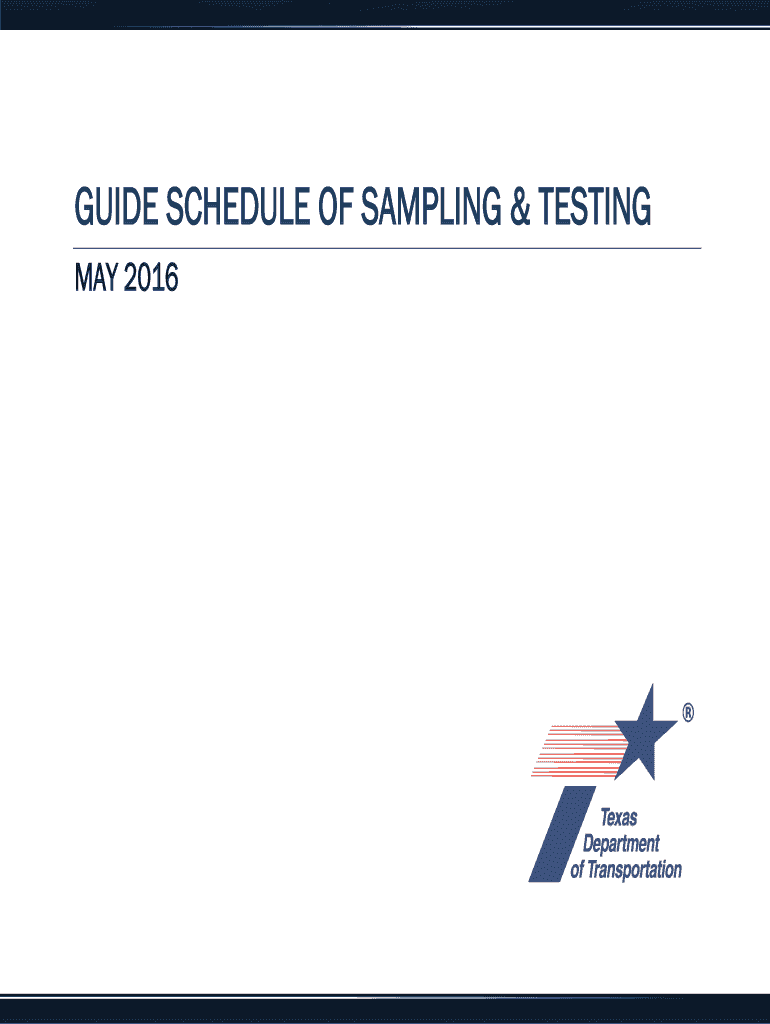GUIDE SCHEDULE OF SAMPLING & TESTING MAY 2016Using the Guide Schedule Research of sampling and testing rates listed for project tests in the following Guide Schedule show that the Departments and