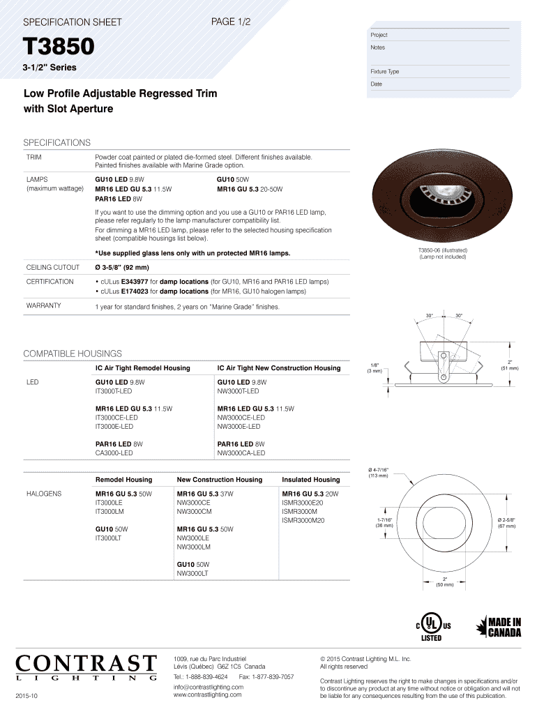 Get the free PAGE 1/2 SPECIFICATION SHEET Project T3850 Notes 31/2 "