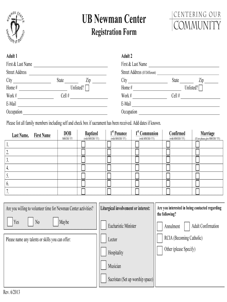 Get the free Newman-Parish-Registration-form - newmancenteratub