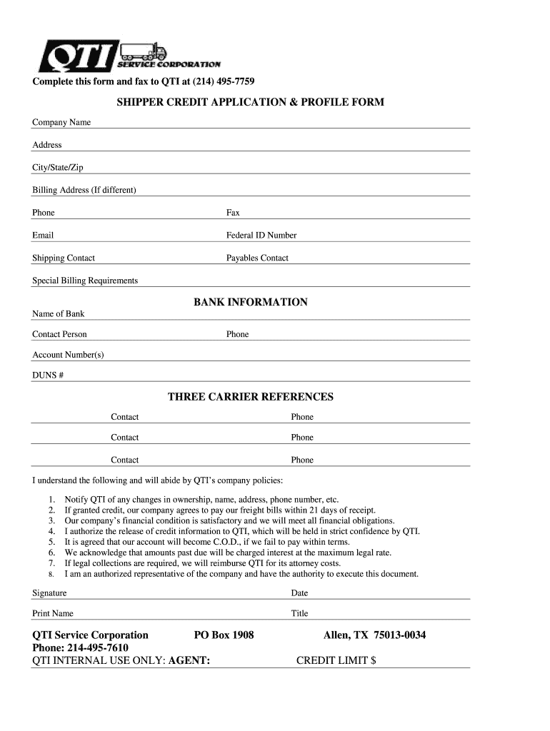 Any shipper looking to establish credit with a shipping company is required to file a bshipperb credit application amp.