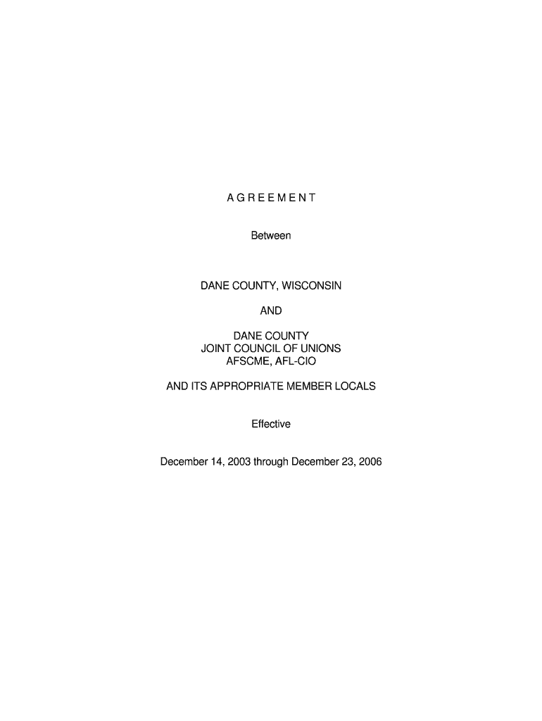 This document outlines the collective bargaining agreement between Dane County and the Dane County Joint Council of Unions, covering various aspects of employment such as wages, hours, benefits, and