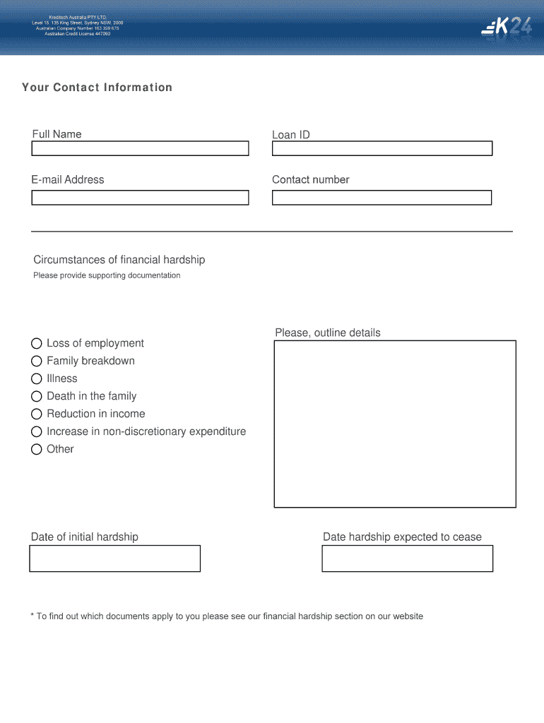 The Financial Hardship Application is designed to assist customers of Kreditech Australia who are experiencing financial difficulties that impact their ability to repay loans. This form is essential for individuals seeking temporary relief and flexibility in managing their financial commitments.