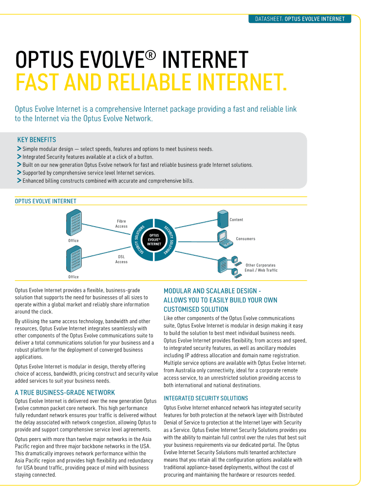 DATASET: OPTUS EVOLVE INTERNETOPTUS EVOLVE INTERNET FAST AND RELIABLE INTERNET. Optus Evolve Internet is a comprehensive Internet package providing a fast and reliable link to the Internet via the