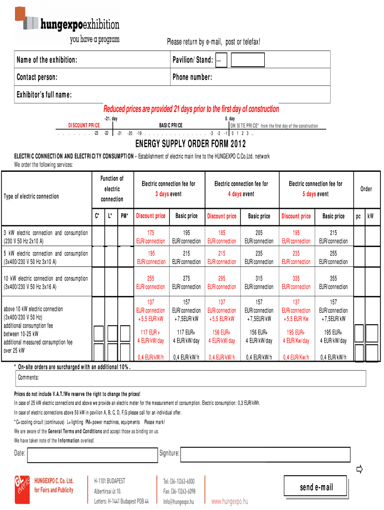Please return by email, post or telefax! Name of the exhibition: Pavilion×Stand: Contact person: Phone number: Exhibitors full name: Reduced prices are provided 21 days prior to the first day of