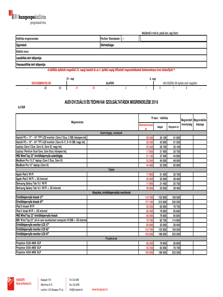 Get the free AUDIOVIZULIS S TECHNIKAI SZOLGLTATSOK MEGRENDELSE 2016 - cdn hungexpo