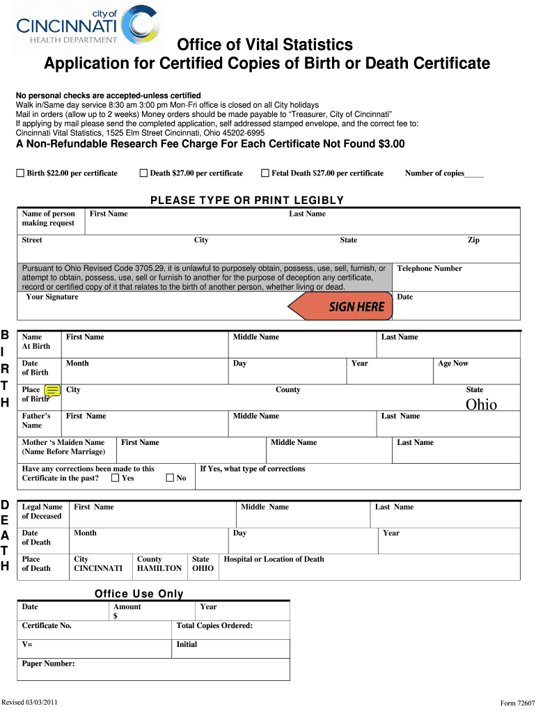 Get the free New birth records are available 7 to 10 weeks after the date of birth - cincinnati-oh