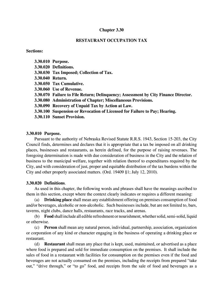 RESTAURANT OCCUPATION TAX