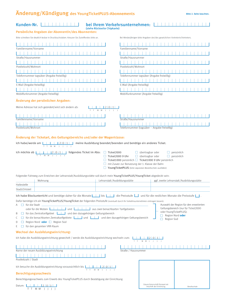 Wie fülle ich Änderungskündigung des youngticketplusabonnements kundennr aus?