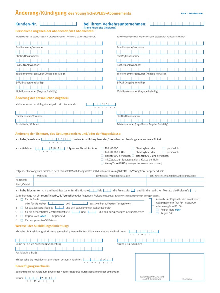 Wie fülle ich die Änderung und Kündigung des youngticketplus-abonnements aus?