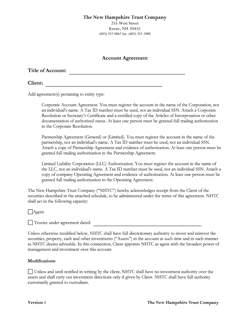 Get the free NHTC Corporate Account Agreement - New Hampshire Trust ...
