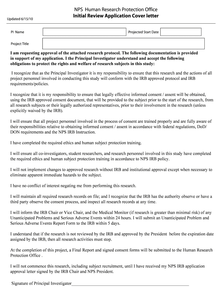 Get the free NPS Human Research Protection Office Initial Review bApplicationb bb - nps