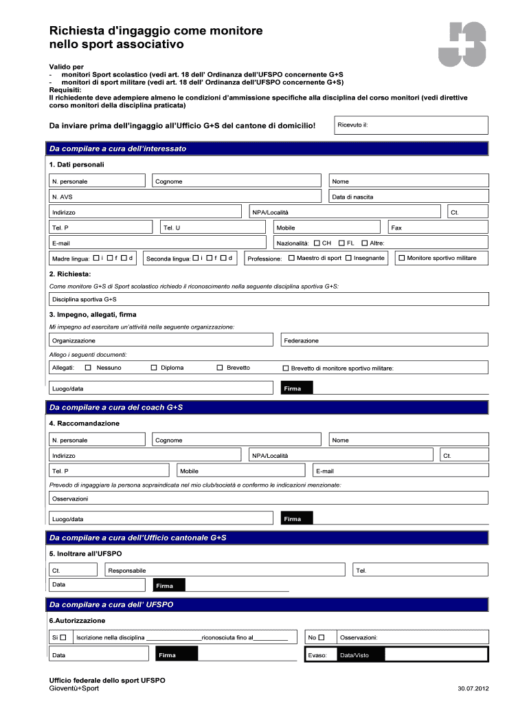 Richest d 'intaglio come monitor hello sport associative Valid per monitor Sport scholastic (Jedi art. 18 dell Ordinance dellUFSPO concertante G+S monitor DI sport military (Jedi art. 18 dell Ordinance