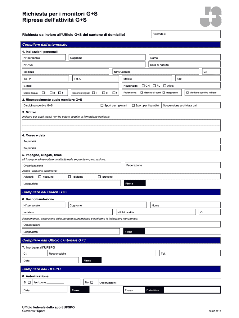 Ottieni il gratuito Richiesta per i monitori G+S e allenatori G+S delle ... - Jugend+Sport - juge...